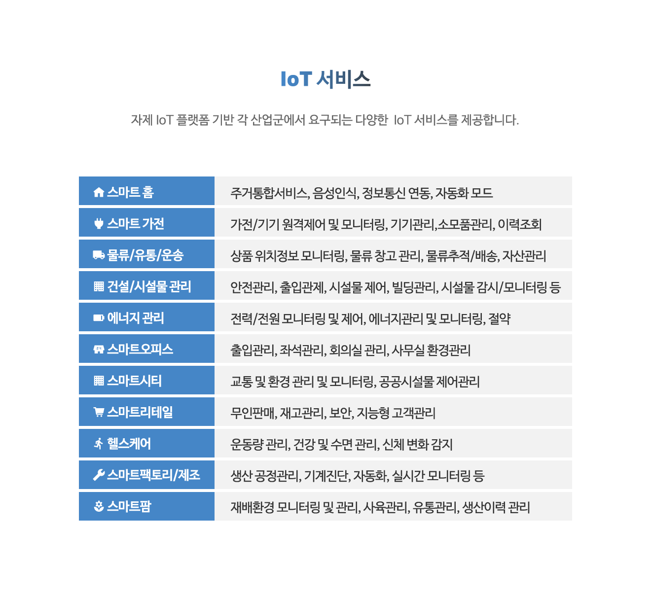 다양한 분야의 IoT 플랫폼 구축 노하우를 통한 IoT Total 서비스 제공